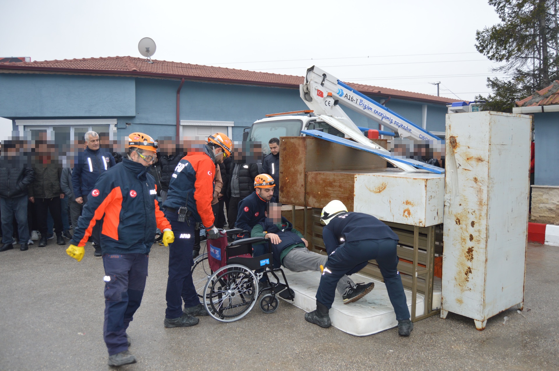 Tatbikat gereği Polis, Acil Servis, İtfaiye, Afad ve Oedaş Ekipleri kısa sürede kurumumuza ulaşmıştır.