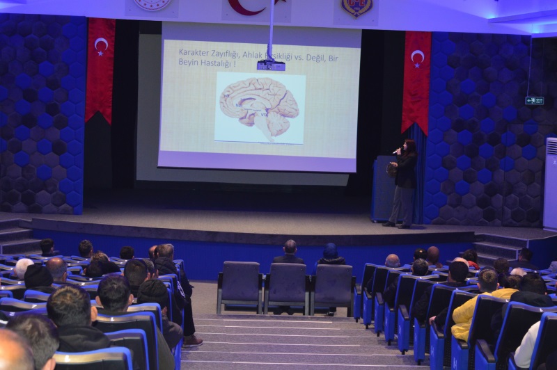 Etkinlikte Sosyolog Ender ÇOBANOĞLU ve Psikolojik Danışman Cemre Nur KARAGÖL tarafından yapılan sunum hükümlüler tarafından ilgiyle izlendi.